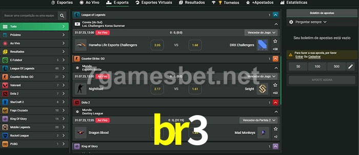 O br3 oferece uma grande seleção de opções de apostas em e-sports com probabilidades competitivas